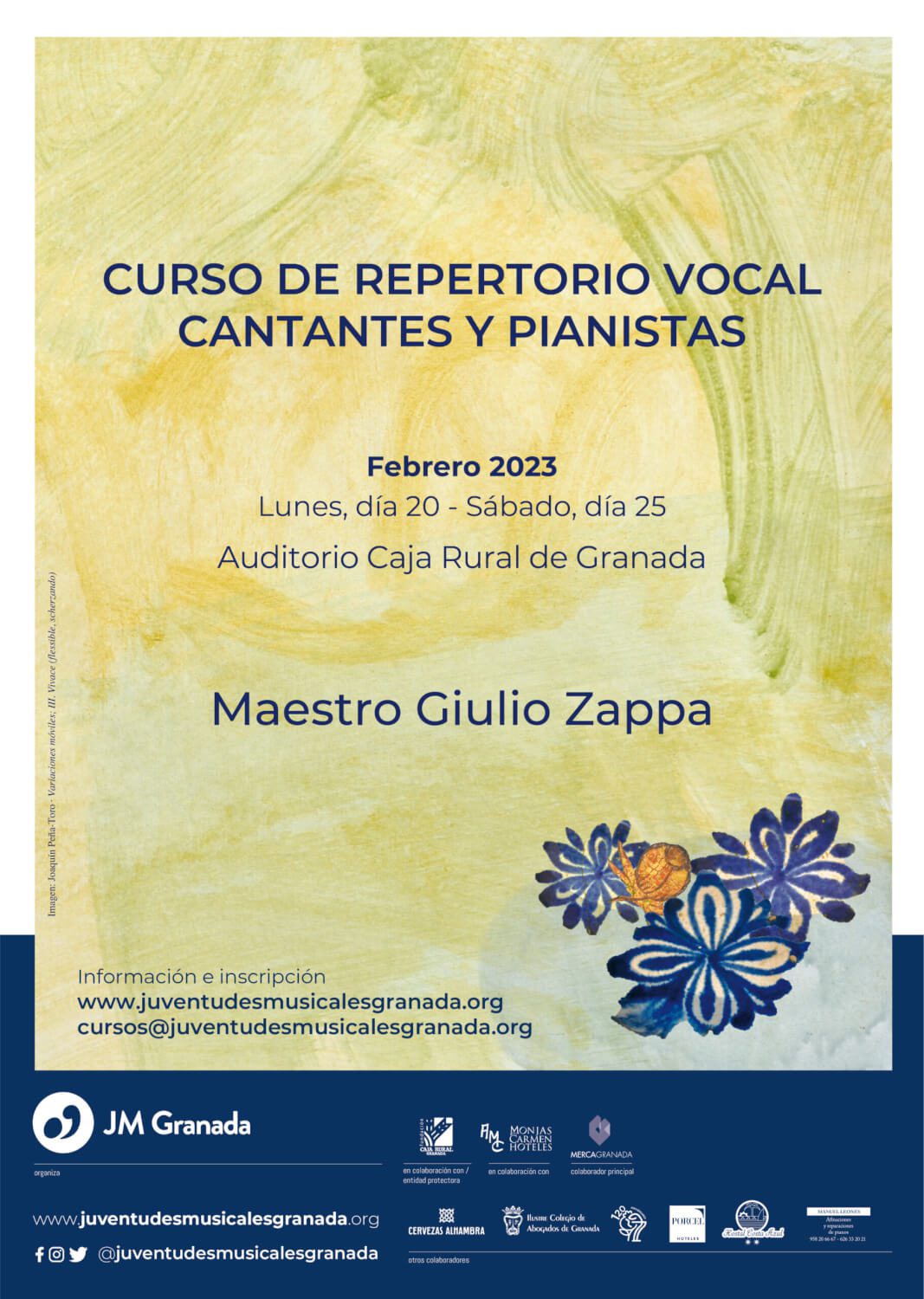 El próximo mes de febrero, entre los días 20 y 25, tendremos el tradicional curso con el maestro italiano Giulio Zappa. Este se llevará a cabo en el Auditorio de Caja Rural Granada y finalizará, tras cinco días de clases, con un concierto de clausura de los alumnos que han trabajado el repertorio durante toda la semana.