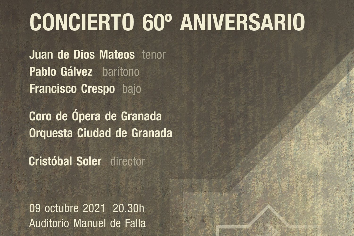 En esta ocasión se unen de nuevo en el escenario, como ya ocurrió en el pasado ‘Concierto 1.000’ de la asociación, el Coro de Ópera de Granada y la Orquesta Ciudad de Granada, con quienes también actuarán los solistas Juan de Dios Mateos (tenor), Pablo Gálvez (barítono) y Francisco Crespo (bajo), todos ellos bajo la dirección del maestro valenciano Cristóbal Soler.